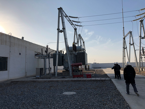 1.專家組人員現(xiàn)場(chǎng)檢查發(fā)電場(chǎng)主變壓器。
