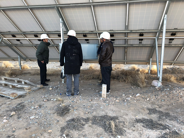 4.專家組人員檢查光伏組件、匯流箱。