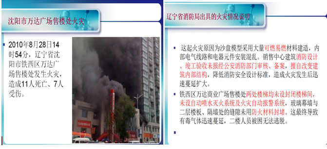 第一部分:重點(diǎn)對(duì)沈陽(yáng)市萬(wàn)達(dá)廣場(chǎng)售樓處火災(zāi)進(jìn)行深層次的剖析